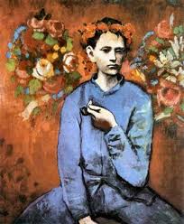 رسم الفنان بابلو بيكاسو لوحة "الصبي والغليون"، في عام 1905، خلال "الفترة الوردية" عندما كان يبلغ من العمر أربعة وعشرين عامًا وانتقل لتوه إلى حي مونمارتر في باريس. وتصور اللوحة صبيًا باريسيًا يرتدي ملابس زرقاء وعلى رأسه باقة من الورد ويمسك بيده اليسرى غليونًا، وقد اشتهرت اللوحة في مزاد عام 2004 بمبلغ 104 ملايين دولار، وهو سعر يعتبره الكثير من النقاد الفنين غير متوافق مع الجدارة الفنية الفعلية، وتقدر قيمتها فى وقتنا الحالى بـ 130.6 مليون دولار. قد تبدو هذه اللوحة للناظر في شكل سريع إليها أنها لا تحتوي إلا على "صبي" يرتدي بذلة زرقاء، ويحمل بيده اليسرى "غليونًا" يكاد يلاصق الحافة اليمنى من صدره، ويعتمر "إكليلًا من الزهور"، وفي المشهد الخلفي هناك "باقتان من الزهور" تسبحان في مناخ وردي، وقد يبدو هذا السرد للتكوين الإنشائي عاديًا، وليس فيه ما يثير الشهية أو الغرابة أو التفرّد، فهذه اللوحة هي امتداد لسلسلة طويلة من الأعمال الفنية التي شكلت "مرحلته الوردية". بيكاسو أنجز هذه "التحفة الفنية" في حي مونمارتر في باريس عام 1905 وهو في سن الرابعة والعشرين، وقبل أن يشرع في تنفيذ هذا العمل على الكانفاس بقياس "100 – 81.3" كان أنجز الكثير من "التخطيطات التمهيدية" للصبي الذي كان يُعرف بـ"بتي لوي" أو "لويس الصغير" والذي كان يتردد كثيرًا على محترف الفنان بيكاسو، وفي بعض الأحيان كان يبقى طوال النهار وهو يراقب بيكاسو المنغمس في عمله، ويجد في هذه المراقبة نوعًا من المتعة الداخلية الدفينة التي تنطوي على سر ما. وذات ليلة كان بيكاسو يسهر مع أصدقائه خارج المنزل، وصادف أحدهم أن قرأ على سمعهم قصيدة جميلة للشاعر بول فرلين "وكانت تتمحور حول صبي عمره 16 عامًا"، وكان يضع على رأسه إكليلًا من الزهور، فجأة شطحت في مخيلة بيكاسو هذه الصورة التي كانت غائبة عنه، أو ربما ضائعة تمامًا، ولم يعرف بيكاسو في حينه، من شدة قلقه واضطرابه ماذا عليه أن يفعل، فاختلق عذرًا، وغادرهم مسرعًا إلى محترفة حيث رسم "طوق الزهور" على رأس "بتي لوي" ليكمل المشهد الذي كان ناقصًا من وجهة نظره في الأقل. ومع أن بعض النقاد الفنيين الذين تناولوا هذه اللوحة دراسة وتحليلًا أشاروا على استحياء أن هذا العمل الفني لا يخلو من مسحة رومانسية تجلت في مرحلة الوردية، غير أن واقع الحال هو أعمق من اللمسة الرومانسية الشفيفة، إن هذا العمل الفني هو عمل إروسي بامتياز يكشف عن النزعة المثلية لدى بيكاسو. |
